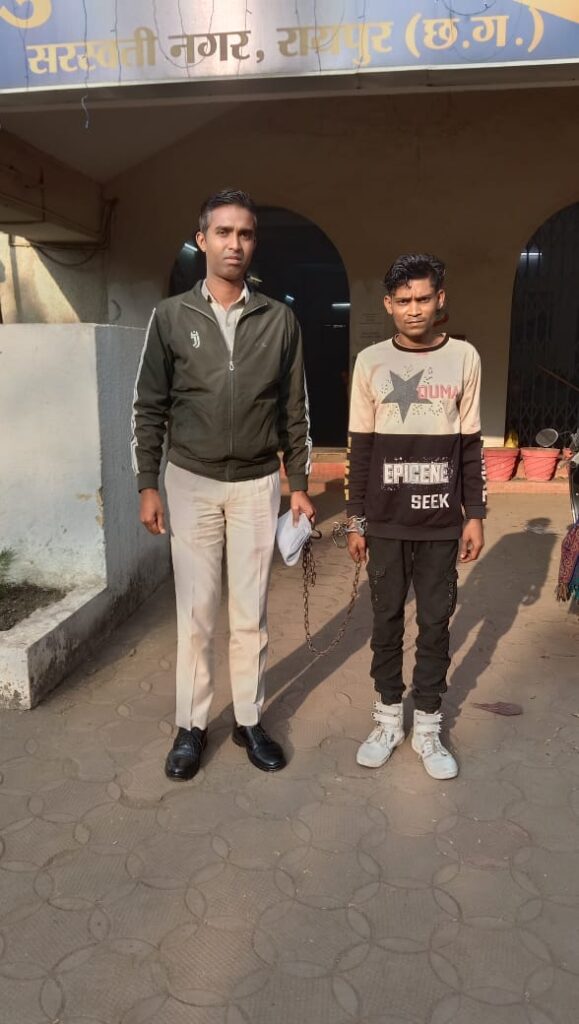 नाम आरोपी – दीपक कुमार पिता राजेश कुमार वर्ष 27 पता सामुदायिक भवन के पास कुकुर बेडा रायपुर