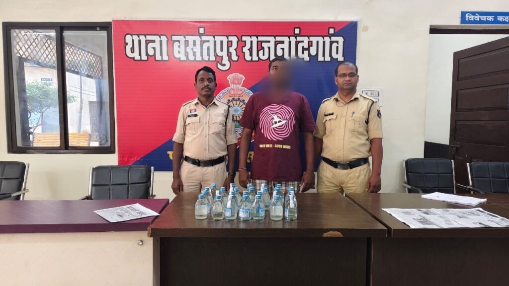 श्रीमान् पुलिस अधीक्षक राजनादगांव सुश्री अंकिता शर्मा के निर्देश एवं अतिरिक्त पुलिस अधीक्षक श्री राहुल देव शर्मा तथा नगर पुलिस अधीक्षक श्रीमती वैशाली जैन (भा0पु0से0) के मार्गदर्शन पर थाना प्रभारी निरीक्षक एमन साहू के नेतृृत्व मे थाना बसंतपुर क्षेत्र शराब कोचिया के विरूद्व चलाये जा रहे अभियान के दौरान आरोपी 01. खिलेश पाण्ड्या पिता राजेश पाण्ड्या निवासी प्रभात नगर लालबाग थाना बसंतपुर जिला राजनांदगांव के कब्जे से 30 पौवा देशी शराब जुमला 5.400 बल्क लीटर कीमती 2400/रूपये जप्त कर आरोपीगणो के विरूद्व आबकारी एक्ट की धारा 34(2) के तहत् कार्यवाही कर आरोपी को गिरफ्तार किया गया। माननीय न्यायालय के समक्ष पेश किया गया। माननीय न्यायालय से आरोपी को जेल वारंट प्राप्त होने पश्चात जेल दाखिल किया गया।