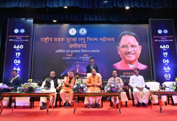 मुख्यमंत्री विष्णु देव साय राजधानी रायपुर में आयोजित राष्ट्रीय सड़क सुरक्षा लघु फिल्म महोत्सव