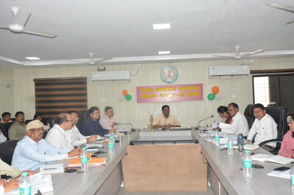 मोहला 27 अगस्त 2024। कलेक्टर श्री एस जयवर्धन ने जिला कार्यालय के सभाकक्ष में अधिकारियों की बैठक लेकर आवश्यक दिशा निर्देश दिये। कलेक्टर ने बैठक में अधिकारियों को निर्देशित करते हुए कहा कि माननीय मुख्यमंत्री एवं प्रभारी मंत्री के कार्यालय से प्राप्त पत्रों को बेहद गंभीरता से लें। प्राप्त सभी पात्रों को प्राथमिकता के साथ गुणवत्तापूर्ण निराकरण करना सुनिश्चित करें। प्रभारी मंत्री द्वारा पूर्व में लिये गये बैठक के दौरान दिये गये निर्देशों का कड़ाई से पालन करते हुए शीघ्र लक्ष्य पूर्ति करने एवं निराकरण करने के निर्देश भी दिए गए हैं।