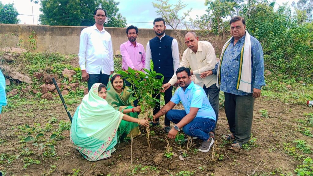 कामता में शाला प्रवेश उत्सव कार्यक्रम में पौधारोपण उपस्थित हुए दीप्ती गोविंद वर्मा।