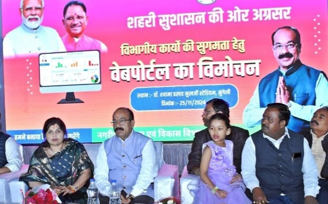विभाग द्वारा इस पोर्टल को विशेष रूप से नगरीय निकायों में संचालित महत्वपूर्ण योजनाओं व कार्यों की समीक्षा एवं मॉनिटरिंग के लिए विकसित किया गया है। यह पोर्टल निकायों के कार्यों की निगरानी को सरल और प्रभावी बनाएगा। इसके माध्यम से यह सुनिश्चित किया जाएगा कि योजनाओं का पूरा लाभ नागरिकों तक पहुंचे। यह पोर्टल डिजिटल इंडिया का दायरा बढ़ाने के साथ ही विभाग को आधुनिक कार्यप्रणाली से जोड़ता है। इस पोर्टल के उपयोग से न केवल विभाग की दक्षता बढ़ेगी, बल्कि कार्यों की त्वरित मॉनिटरिंग में भी हो सकेगी। पोर्टल की लॉन्चिंग के दौरान मुंगेली के कलेक्टर श्री राहुल देव और पुलिस अधीक्षक श्री भोजराम पटेल सहित जनप्रतिनिधि, गणमान्य नागरिक और स्थानीय नागरिक बड़ी संख्या में मौजूद रहे।