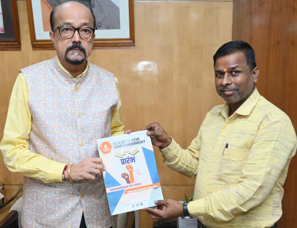रायपुर – महामहिम राज्यपाल रमेन डेका को आज राजभवन में ‘‘सोसाइटी फॉर एम्पावरमेंट‘‘ द्वारा प्रकाशित मासिक पत्रिका ‘‘प्रारंभ‘‘ की प्रति भेंट की गई। विशेष पिछड़ी जनजातियों पर केंद्रित इस विशेषांक का संपादन मानवविज्ञानी एवं राज्यपाल के उप सचिव डॉ. रूपेन्द्र कवि द्वारा किया गया है। इस विशेषांक में विशेष पिछड़ी जनजातियों समुदायों की सामाजिक , सांस्कृतिक एवं आर्थिक स्थिति पर गहन विमर्श प्रस्तुत किया गया है। तथा इससे नीति-निर्माताओं , शोधार्थियों एवं सामाजिक कार्यकर्ताओं को उपयोगी जानकारी मिलेगी। राज्यपाल ने पत्रिका की विषय वस्तु की सराहना करते हुये उन्हें शुभकामनायें दीं। उन्होंने इस पहल को जनजातीय समुदायों की जागरूकता एवं सशक्तिकरण की दिशा में एक महत्वपूर्ण प्रयास बताया।