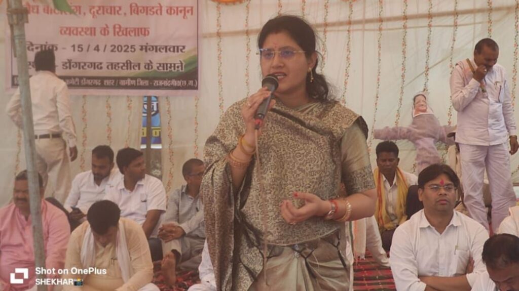 छत्तीसगढ़ के जिला राजनांदगांव धर्मनगरी के महज 4 किलोमीटर की दूरी पर स्थित ग्राम करवारी में भाजपा सरकार के संरक्षण में अवैध शराब के कारोबार चल रहा था जिससे छापामार कारवाई करते हुये 432 पेटी गोवा शराब जप्त की गई तथा नवरात्रि के नौ कन्या भोज के लिए निकले 4 साल के मासूम के साथ बलात्कार और मर्डर कानून व्यवस्था के बिगड़ते हालात को देखकर जिला कांग्रेस अध्यक्ष भागवत साहू के नेतृत्व में तीन विधायक चार पूर्व विधायक सात ब्लॉक अध्यक्ष प्रदेश जिला ब्लॉक के पदाधिकारी की उपस्थिति में डोंगरगढ़ तहसील के सामने धरना प्रदर्शन हुई जिसमें सबसे पहले राष्ट्रपिता महात्मा गांधी के तैलचित्र पर दीप जलाकर पूजा अर्चना कर कार्यक्रम की शुरुआत हुई जिसमें उद्बोधन भाषण देते हुए जिला कांग्रेस अध्यक्ष भागवत साहू ने कहा इस धर्म नगरी डोंगरगढ़ को भाजपा सरकार और उनके नेता कलंकित करने का काम कि हैं नेताम तो एक मुहरा है बड़े सरगना इस काम को कर रहे थे डोंगरगढ़ विधायक हर्षिता स्वामी बघेल ने कहा इस विषय में मेरे द्वारा पुलिस प्रशासन को बार-बार कहा गया लेकिन उनके द्वारा कोई कार्रवाई नहीं करना मतलब साफ है कि भाजपा सरकार के संरक्षण में या दारू का अवैध कारोबार चल रही है डोंगरगांव विधायक दलेश्वर साहू ने कहा हम सबको पता है कि अभी-अभी जिला जनपद के चुनाव हुए हैं उन प्रत्याशियों को दारू मुहैया कराने वाले भी भाजपा के नेता ही है खुज्जी विधायक भोलाराम साहू ने कहा आज डोगरगढ़ में धरना प्रदर्शन अवैध बॉटलिंग के मेन गुणागार को पकड़ने के लिए हो रहा है अगर नहीं पकड़ा जाता है तो सभी ब्लॉक में धरना प्रदर्शन करेंगे यह सरकार हर मामला में फेल है पूर्व मंत्री धनेश पाटीला ने कहा लोगों तक रोजगार गारंटी मुहैया कराना चाहिए हर घर पानी खेतों तक किसनो को पानी देना चाहिए बल्कि यह बीजेपी सरकार पहले शराब चार पाव एक व्यक्ति को दे रहा था अब 24 पाव देने का निर्णय की है पूर्व विधायक भुनेश्वर बघेल ने कहा हमारे माता के नगरी डोंगरगढ़ को भाजपा सरकार दारू का अड्डा बना दी है तथा दुर्ग में 4 साल के मासूम के साथ बलात्कार जैसे खिलौने कृत्य ऐसा लगता है कि छत्तीसगढ़ सरकार के हाथ से नियंत्रण खो चुकी है