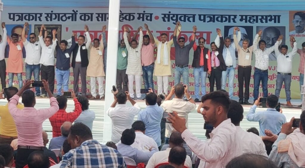 पत्रकारों पर हो रहे हमले फसाने की साजिश को देखते हुए आज रायपुर में संयुक्त पत्रकार महासभा का हुआ आयोजन