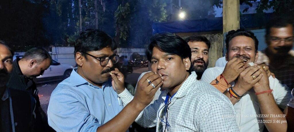 शिक्षकों ने जेडी कार्यालय के समक्ष आतिशबाजी व मिठाई खिलाकर मनाई खुशी