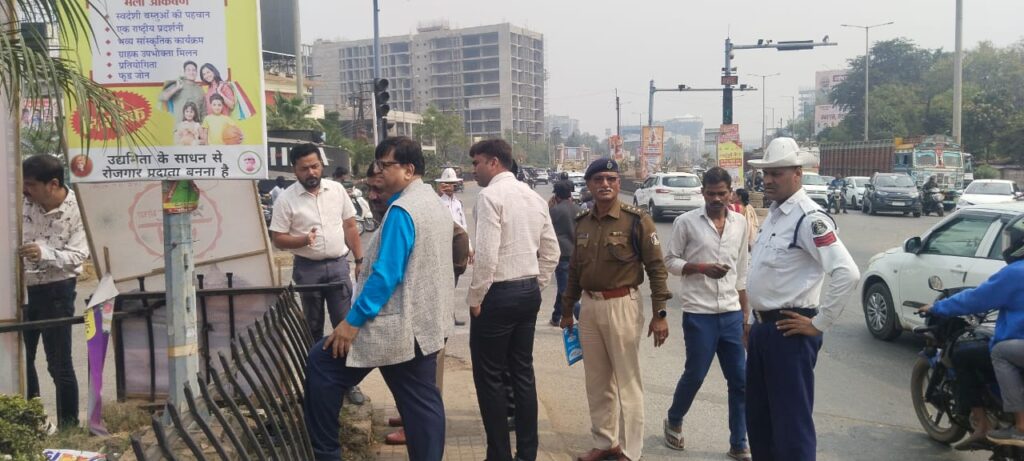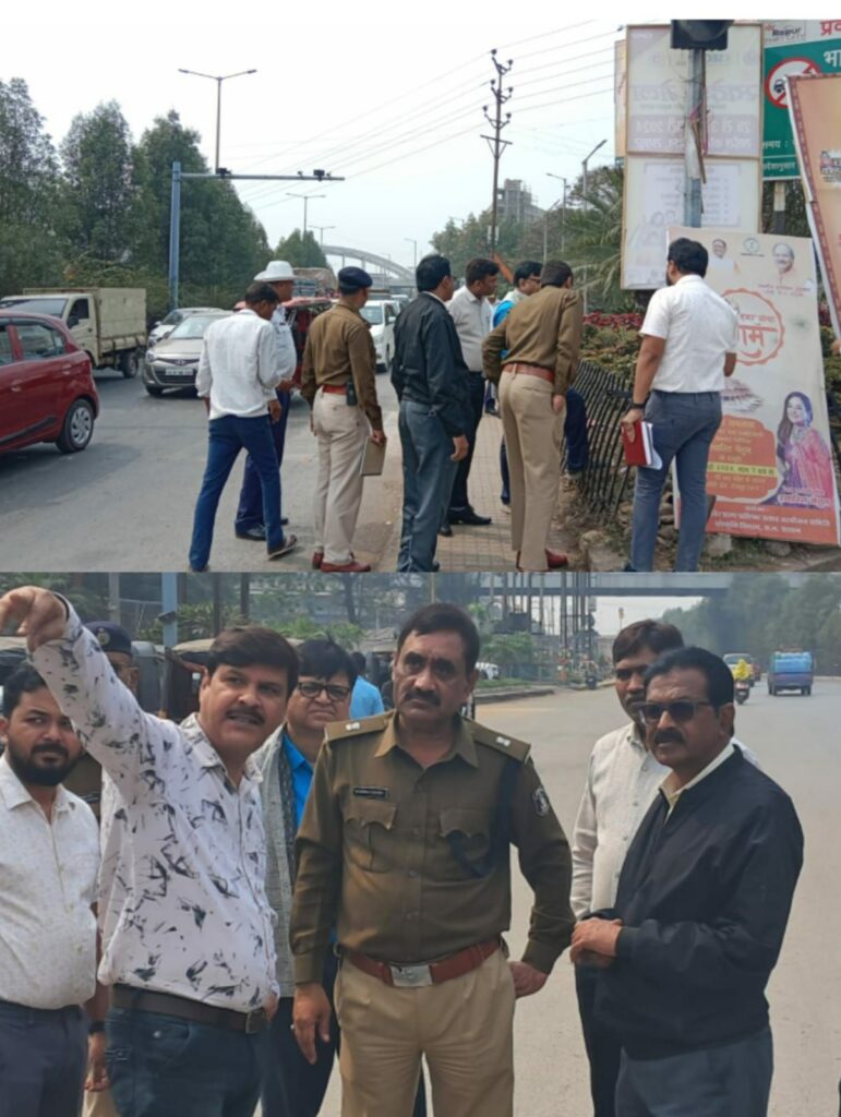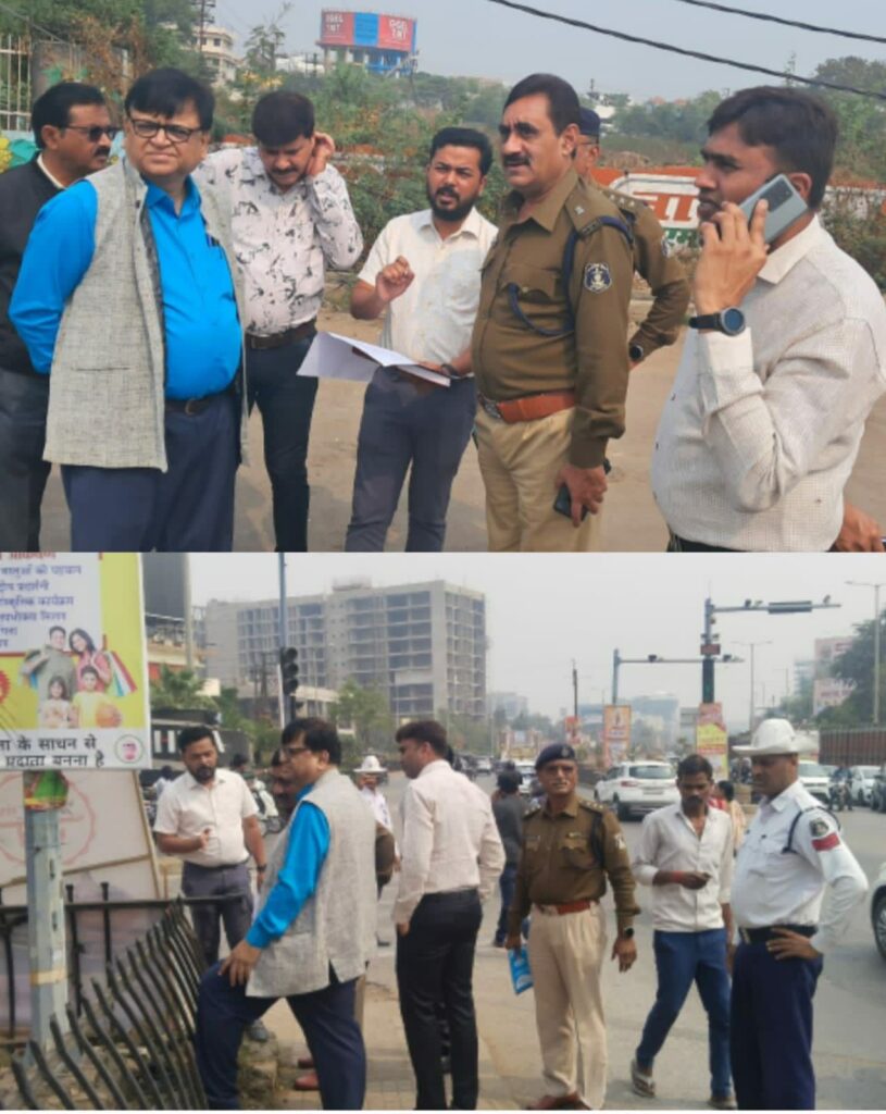 तेलीबांधा थाना तिराहा (मेक इन इंडिया चौक) का किया गया संयुक्त निरीक्षण।सुगम यातायात हेतु किए जाएंगे आवश्यक उपाय।