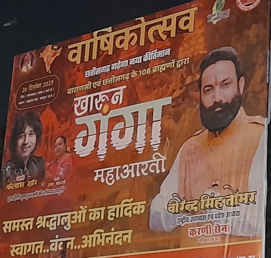खारून नदी तट पर स्थित महादेव घाट हर मास पूर्णिमा के दिन यह आरती पिछले वर्ष से प्रारंभ कि गई है। यह आयोजन करनी सेना के राष्ट्रीय उपाध्यक्ष और प्रदेश अध्यक्ष वीरेंद्र सिंह द्वारा एक अच्छे संदेश को लेकर किया जा रहा है।
