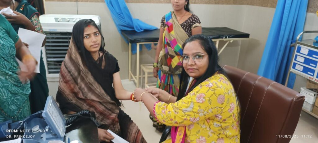 कवर्धा, 11 अगस्त 2025। कलेक्टर श्री गोपाल वर्मा के मार्गदर्शन और मुख्य चिकित्सा एवं स्वास्थ्य अधिकारी डॉ. देवेन्द्र कुमार तुरे के निर्देशानुसार शहरी प्राथमिक स्वास्थ्य केन्द्र (हमर अस्पताल) कवर्धा में रक्षाबंधन का पर्व प्रधानमंत्री सुरक्षित मातृत्व अभियान के साथ हर्षोल्लास से मनाया गया। इस अवसर पर चिकित्सा अधिकारी डॉ. वर्षा ने अस्पताल में उपस्थित बहनों की कलाई पर रक्षासूत्र बांधकर उन्हें शुभकामनाएं दीं।