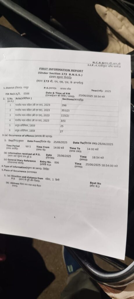 रायपुर, 25 जून 2025: राजधानी के गौतम नगर में एक महिला का नहाते समय वीडियो बनाने की कोशिश का मामला सामने आया है। पीड़िता खुशबू सोनी के अनुसार, आरोपी शेख जफर उर्फ झोल्टू ने उनके बाथरूम की गोपनीयता भंग करते हुए मोबाइल से वीडियो रिकॉर्ड करने की कोशिश की।