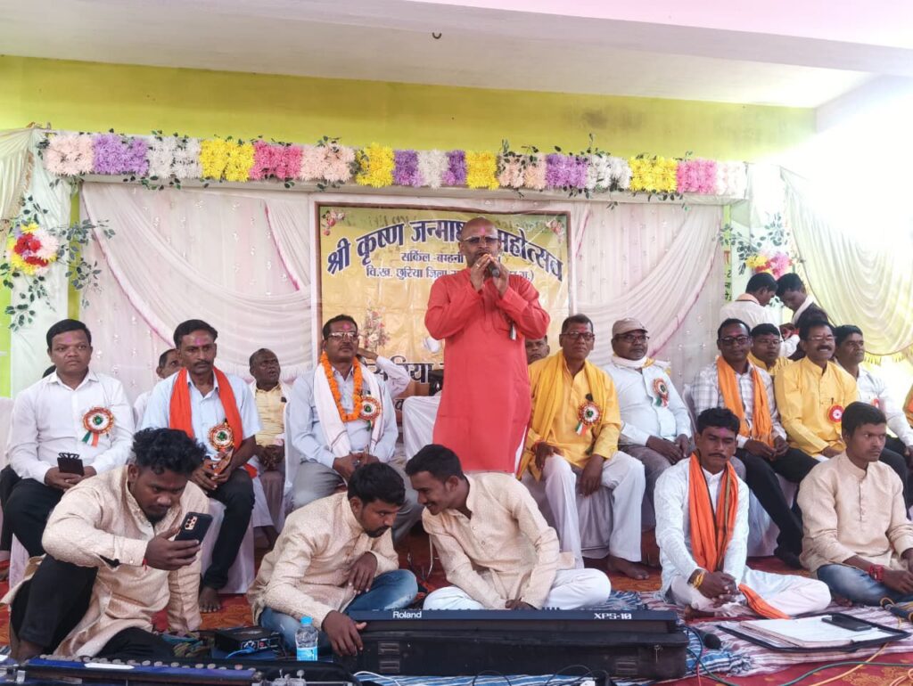 छुरिया:- खुज्जी विधानसभा क्षेत्र के विभिन्न गांव आंको, आमगांव,अछोली,तेंदूटोला में आयोजित विभिन्न कार्यक्रम में जिला भाजपा महामंत्री रविन्द्र वैष्णव मुख्य अतिथि के रूप में शामिल हुए। जिला भाजपा महामंत्री रविन्द्र वैष्णव ने सभी को कृष्ण जन्माष्टमी महोत्सव व दही हांडी की बधाई एवं शुभकामनाएं दी। साथ जिला भाजपा महामंत्री रविन्द्र वैष्णव को समाज के द्वारा कुछ मांग भी किया गया जिसे श्री वैष्णव ने पुरा करने का आश्वासन दिया। कार्यक्रम को जिला भाजपा महामंत्री रविन्द्र वैष्णव ने संबोधित करते हुए कहा कि श्री कृष्ण जन्माष्टमी यह केवल एक धार्मिक पर्व नहीं, बल्कि प्रेम, भक्ति और न्याय की विजय का प्रतीक है। कृष्ण जन्माष्टमी की कथा हमें अंधकार से प्रकाश की ओर बढ़ने, संघर्षों के बीच उम्मीद और धर्म की पुनर्स्थापना का संदेश देती है।जन्माष्टमी की पावन कथा जो कि अधर्म पर धर्म की विजय और अंधकार में भी आशा और प्रेम की अटल शक्ति का प्रतीक है। साथ ही इस अवसर पर धन्ना लाल यादव अध्यक्ष सर्किल यादव समाज बम्हनी चारभांटा ,राधिका मानिक चंन्द्रवंशी, धर्मवीर चंन्द्रवंशी, गुरचरन कतलाम, उभयराम मंडावी,माही यादव, शिशुपाल साहु, ललित साहु, तुलाराम साहु,एंकात चन्द्राकार समेत समाज के पदाधिकारिगण व ग्रामवासी उपस्थित थे।