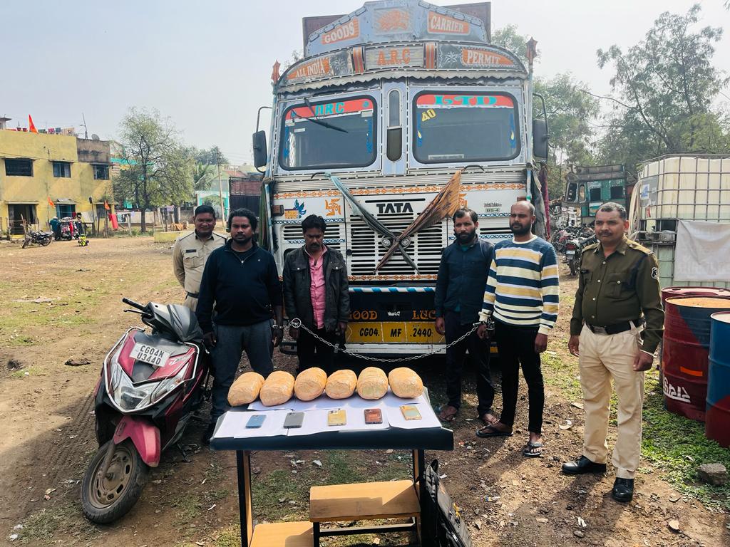 विवरण – वरिष्ठ पुलिस अधीक्षक महोदय श्री प्रशांत अग्रवाल द्वारा रायपुर पुलिस के समस्त पुलिस राजपत्रित अधिकारियों, थाना प्रभारियों सहित प्रभारी एण्टी क्राईम एवं सायबर यूनिट को नशे का काला कारोबार करने वाले कारोबारियों की पतासाजी कर कार्यवाही करने एवं इस पर प्रभावी रूप से अंकुश लगाने आवश्यक दिशा निर्देश दिये गये है। जिस पर समस्त पुलिस राजपत्रित अधिकारियों, थाना प्रभारियों एवं एण्टी क्राईम एवं सायबर यूनिट की टीम द्वारा मुखबीर लगाकर, पेट्रोलिंग व सूचना संकलन कर नशे का कारोबार करने वाले कारोबारियों के संबंध में सूचना एकत्रित की जा रही है। इसी तारतम्य में दिनांक 27.01.24 को वरिष्ठ अधिकारियों के निर्देशन व मुखबीर की सूचना पर एण्टी क्राईम एण्ड साईबर यूनिट तथा थाना धरसींवा पुलिस की संयुक्त टीम द्वारा थाना धरसींवा क्षेत्रांतर्गत गिरौध आयुष पेट्रोल पंप पास आरोपी (01) पिन्टु यादव पिता कमल यादव उम्र 31 साल निवासी बरगुनिया थाना कटोरिया जिला बांका बिहार। (02) संजू उईके पिता सिलिप उईके उम्र 25 निवासी उरला आवास योजना कालोनी थाना उरला जिला रायपुर। (03) सूरज वर्मा पिता संतराम वर्मा उम्र 26 साल निवासी बीरगांव संतोष नगर थाना उरला जिला रायपुर। (04) राजेश सेन पिता लक्ष्मण सेन उम्र 36 साल निवासी राजेन्द्र नगर बजरंग मंदिर के पास उरला थाना उरला जिला रायपुर को गिरफ्तार कर उनके कब्जे से 06 किलो 100 ग्राम गांजा, बिक्री रकम 20,500/- रूपये तथा 05 नग मोबाईल फोन जुमला कीमती लगभग 1,00,000/- रूपये एवं घटना में प्रयुक्त 01 ट्रक वाहन क्रमांक सीजी/04/एमएफ/2440 तथा 01 नग दोपहिया वाहन क्रमांक सीजी/04/एनयू/3440 जप्त कर आरोपियों के विरूद्ध थाना धरसींवा में अपराध क्रमांक 45/2024 धारा 20बी नारकोटिक्स एक्ट का अपराध पंजीबद्ध कर कार्यवाही किया गया था। गिरफ्तार आरोपियों से इस काले व्यवसाय के सप्लाई चैन में जुड़े अन्य आरोपियों से पूछताछ करने पर आरोपियों द्वारा गांजा को उडीसा के जिला खुर्धा निवासी गोविंद चंद्र रथ से लाना बताया गया। जिस पर एण्टी क्राईम एण्ड साईबर यूनिट तथा थाना धरसींवा पुलिस की संयुक्त टीम द्वारा उडीसा के जिला खुर्धा रवाना होकर आरोपी गोविंद चंद्र रथ की पतासाजी करते हुए उसे पकड़ कर पूछताछ करने पर आरोपी द्वारा गांजा को गिरफ्तार आरोपियों को बिक्री करना बताया गया। जिस पर आरोपी गोविंद चंद्र रथ को गिरफ्तार कर उसके कब्जे से घटना से संबंधित मोबाईल फोन जप्त कर आरोपी के विरूद्ध कार्यवाही किया गया।