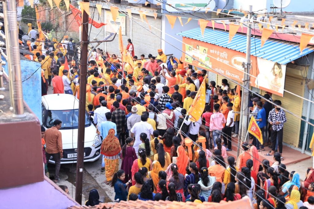 बिलासपुर / अयोध्या में श्रीराम जी मंदिर में प्राण प्रतिष्ठा के पावन अवसर पर नगर पंचायत बेलगहना के मुख्य मार्गों पर राम भक्तों के द्वारा राम जी की भव्य शोभायात्रा निकाली गई ।इस शोभायात्रा में श्री राम जी की झांकी आकर्षण का केंद्र रहा, वही इस शोभा यात्रा मे धुमाल मे आतिशबाजी,के साथ यह यात्रा बेलगहना स्थित श्री सिद्ध बाबा मंदिर से निकलकर हाई स्कूल मार्ग होते हुए शिव मंदिर से छन्नू चौक के रास्ते मेन बाजार चौक होते हुये ठाकुर दईया मंदिर पहुंची। लोगों ने शोभा यात्रा का भव्य स्वागत किया, शोभा यात्रा में राम भक्ति के गीत के साथ लोग भारी संख्या में नाचते झूमते हुए नजर आए,ज़हां जहां से शोभायात्रा निकली वहां श्रद्धालुओं एवं भक्तजनों के द्वारा फूल की वर्षा करते हुए जगह जगह स्टाल लगाकर भक्तो के लिए प्रसाद, नाश्ता,पानी,आदि वितरण की गई। इसको लेकर राम भक्तों में उत्साह और उमंग देखने को मिला हजारों भक्त जय श्री राम जयघोष भगवा वस्त्र पहन कर ध्वज पताकाएं लेकर चले, तो बेलगहना नगर का वातावरण राममय हो गया। बेलगहना श्री रामजी के भक्ति में लीन नजर आया। पूरे नगर का भ्रमण कर मंदिर मे विश्राम लिया।वही,शिव मंदिर के पास भव्य भंडारा प्रसाद ,एवं शिव मंदिर,सहित पूरे अरपा परिसर को दीपों से सजा।कर श्री राम का स्वागत उत्सव मनाया गया जो देखने में काफी भव्य और दिव्य था राम जी के स्वागत में सभी अपने घर के बाहर रंगोली बनाए साज सज्जा कर और घर घर दीप जलाकर दीपावली सा उत्सव मनाया गया।,